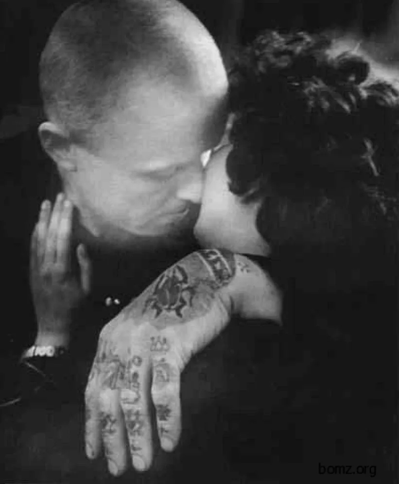 In general, stars, often more than a standard five-pointed star, are a symbol of freedom for Russian criminals. However, the meaning of this popular criminal tattoo varies depending on the part of the body it is placed on. Stars on the shoulders point at a thief-in-law; stars in the collarbone area convey a symbolic message that a criminal has been born free; while stars on the knees are a way to say that its owner will never accept the authority of the prison administration.