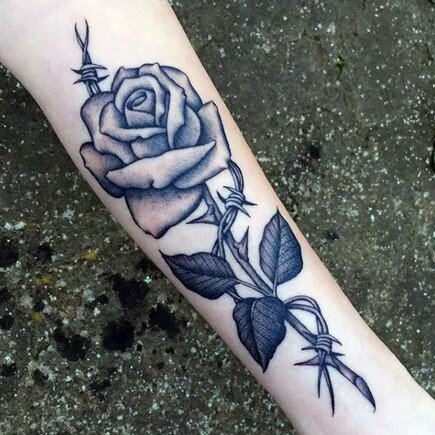 In the Russian criminal tattoo code, a rose is the symbol of a blighted youth. A tattoo of a rose wrapped in barbed wire means its owner was incarcerated before he came of age and became an adult in prison. It’s safe to assume those who bear this tattoo on their bodies served time in a juvenile detention facility.